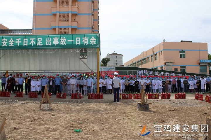 鳳翔縣醫(yī)院3號住院樓工程是全市重點建設(shè)項目之一,也是省、市、縣各級領(lǐng)導(dǎo)密切關(guān)注的民生工程。本項目建設(shè)地址位于縣醫(yī)院內(nèi),占地面積2100平方米,總建筑面積為45663.98平方米,框架結(jié)構(gòu)二十六層(其中地下兩層,地上二十四層),建筑高度97.1米,設(shè)計使用年限為50年,概算總投資1.98億元。項目自開工以來,受到鳳翔縣醫(yī)院領(lǐng)導(dǎo)高度重視和大力支持。通過此次消防實戰(zhàn)演練,項目部將更為嚴(yán)格的開展工地消防安全管理工作,重點做好以下三項工作: