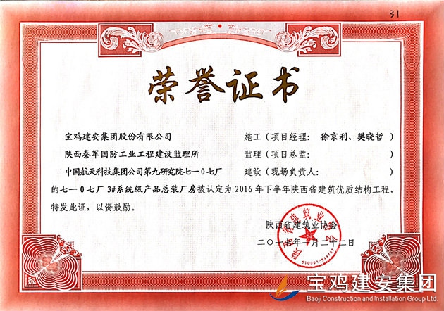 七一0七廠省優質結構工程